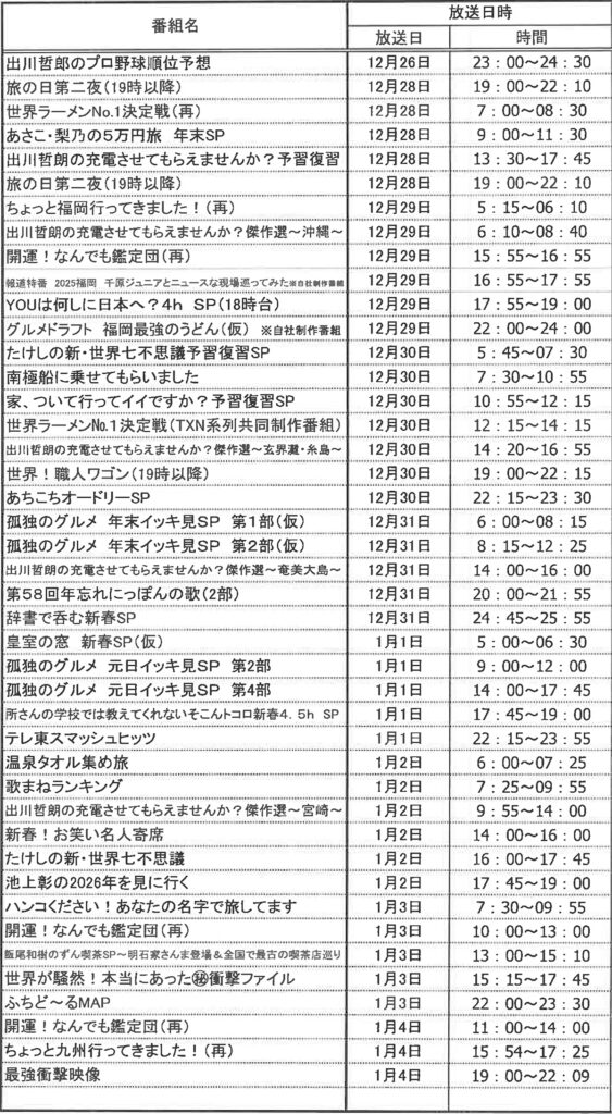 年末年始の期間中はTVQにて放送予定の「出川哲朗の充電させてもらえませんか?」や「孤独のグルメ年末一気見SP」等で流れる予定となっております。
