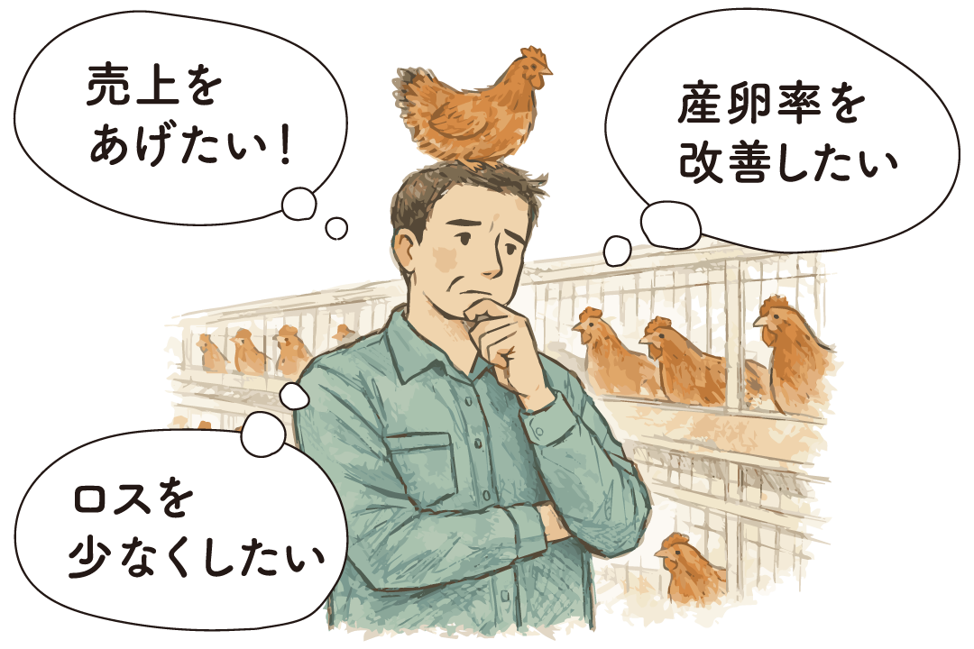 ”1.2万羽の採卵鶏の飼育において、飼料と光熱費の高騰により国からの補助金があっても無休無給の家族経営が何年も続いている。鶏舎は古いが設備投資もできそうにない。卵の卸価格10円(当時)に対して経費が16円かかっている―”