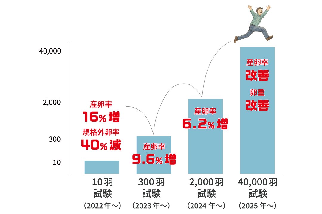そして2025年、ついに商業規模(4万羽)での試験にも成功!